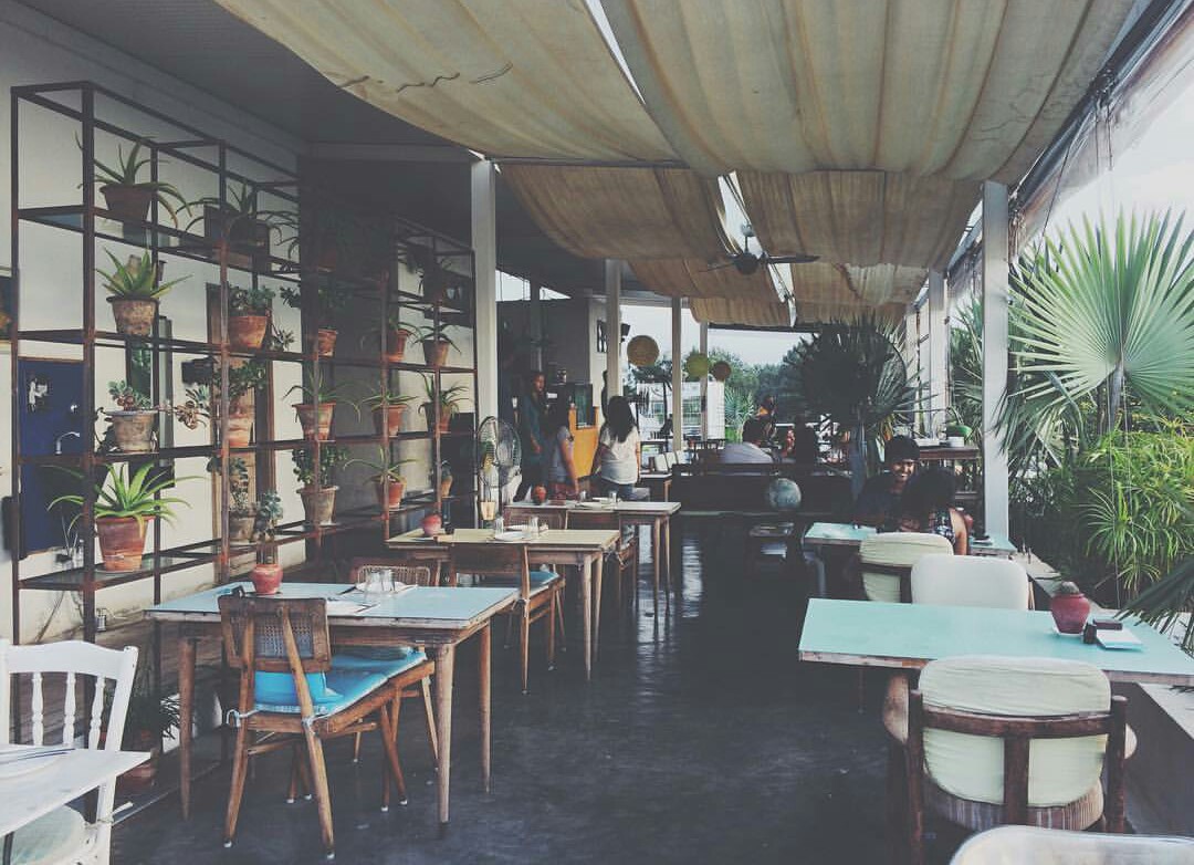 Nestled between narrow bylanes and tall trees this is a truly stunning cafe. The entire cafe is decked up in cottage white interiors with a mini library shelf right at the centre. Being quite a popular hangout among the crowds, the cafe tends to get crowded and loud over the weekends. However, it’s a nice place to sit back and get some work done during the early half of the day.
